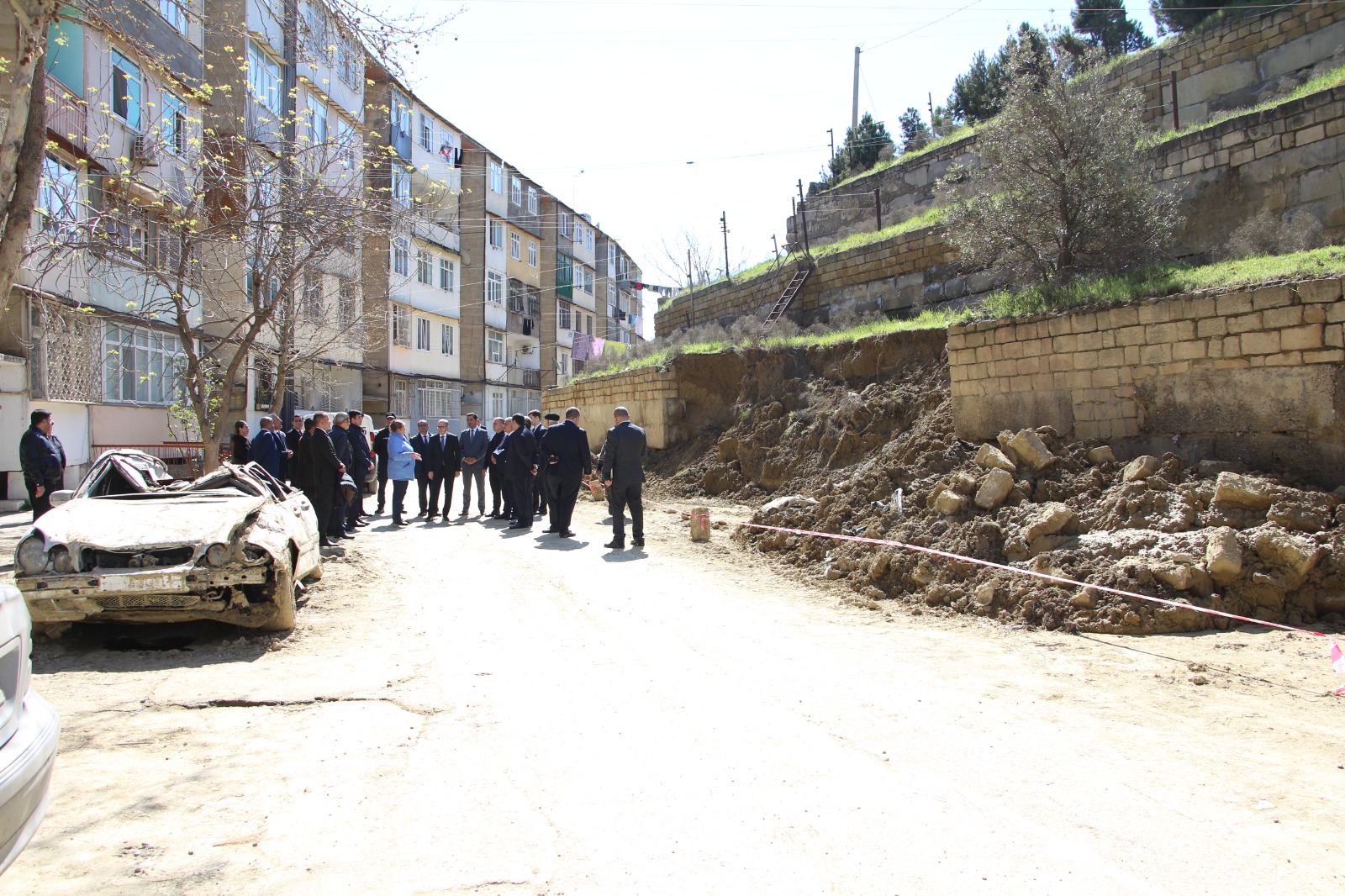 Badamdar qəsəbəsi, İ.Ağayev küçəsi 3 ünvanında yağan intensiv yağışlar nəticəsində baş vermiş torpaq sürüşməsi ilə əlaqədar Rayon İcra Hakimiyyətinin başçısı Vuqar Zeynalov RİHBA-nın məsul əməkdaşları və aidiyyəti qurumların nümayəndələri ilə birgə sözügedən əraziyə baxış keçirmişdir.