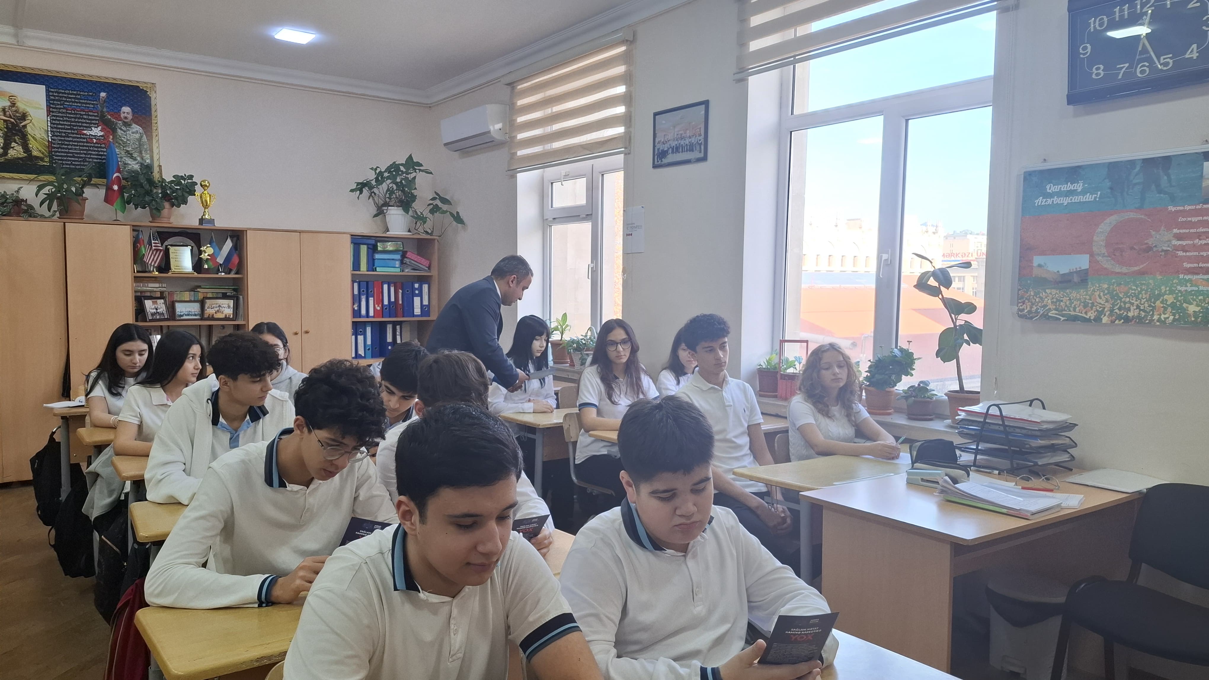 Şagirdlərə sağlam həyat tərzi ilə bağlı məsləhətləri özundə əks etdirən maarifləndirici bukletlər təqdim olunub.