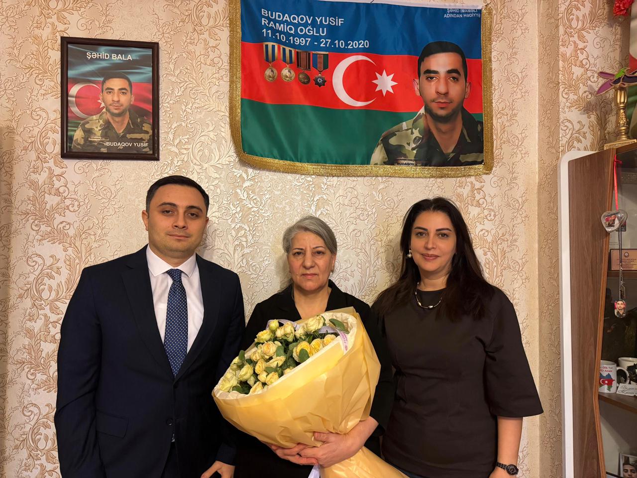 Rayon İcra Hakimiyyəti başçısının müavini – Ərazi-təşkilat və ictimai-siyasi məsələlər şöbəsinin müdiri Kəmalə Həşimova RİHBA-nın şöbə müdirinin müavini – sektor müdiri Orxan Aydınov ilə birgə Vətən müharibəsi şəhidi Yusif Budaqovun anası Lətafət Budaqovanı yubileyi münasibətilə yaşadığı evdə ziyarət edərək təbrik etmişlər.
